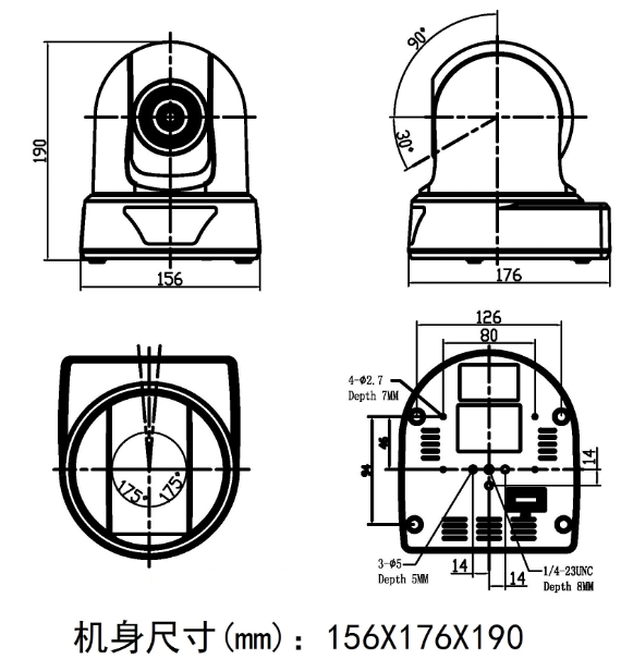 水平转动:±170度;俯仰转动:-30度~+90度 |